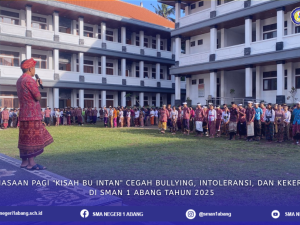 Dengan penuh semangat dan kepedulian terhadap sesama, kegiatan pembiasaan “Kisah Bu Intan” kembali digelar di SMAN 1 Abang (SMAGESA) pagi ini. Kegiatan diawali dengan yel-yel penuh semangat dari seluruh siswa: