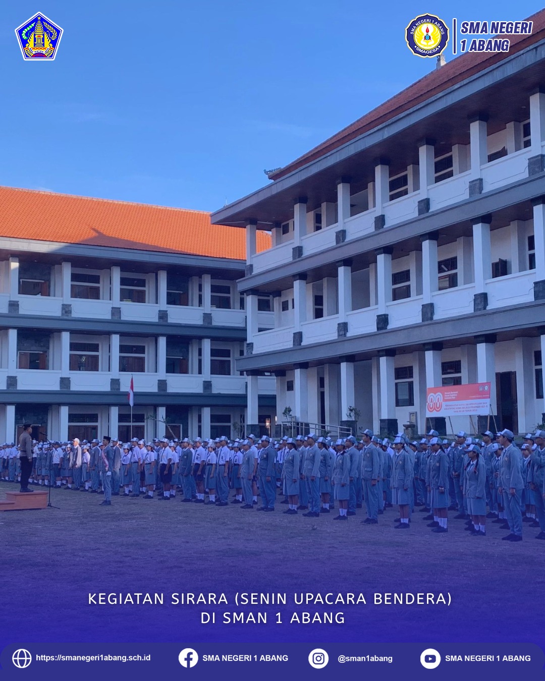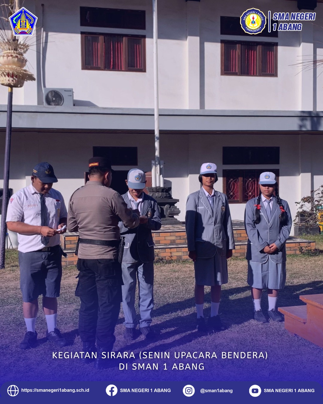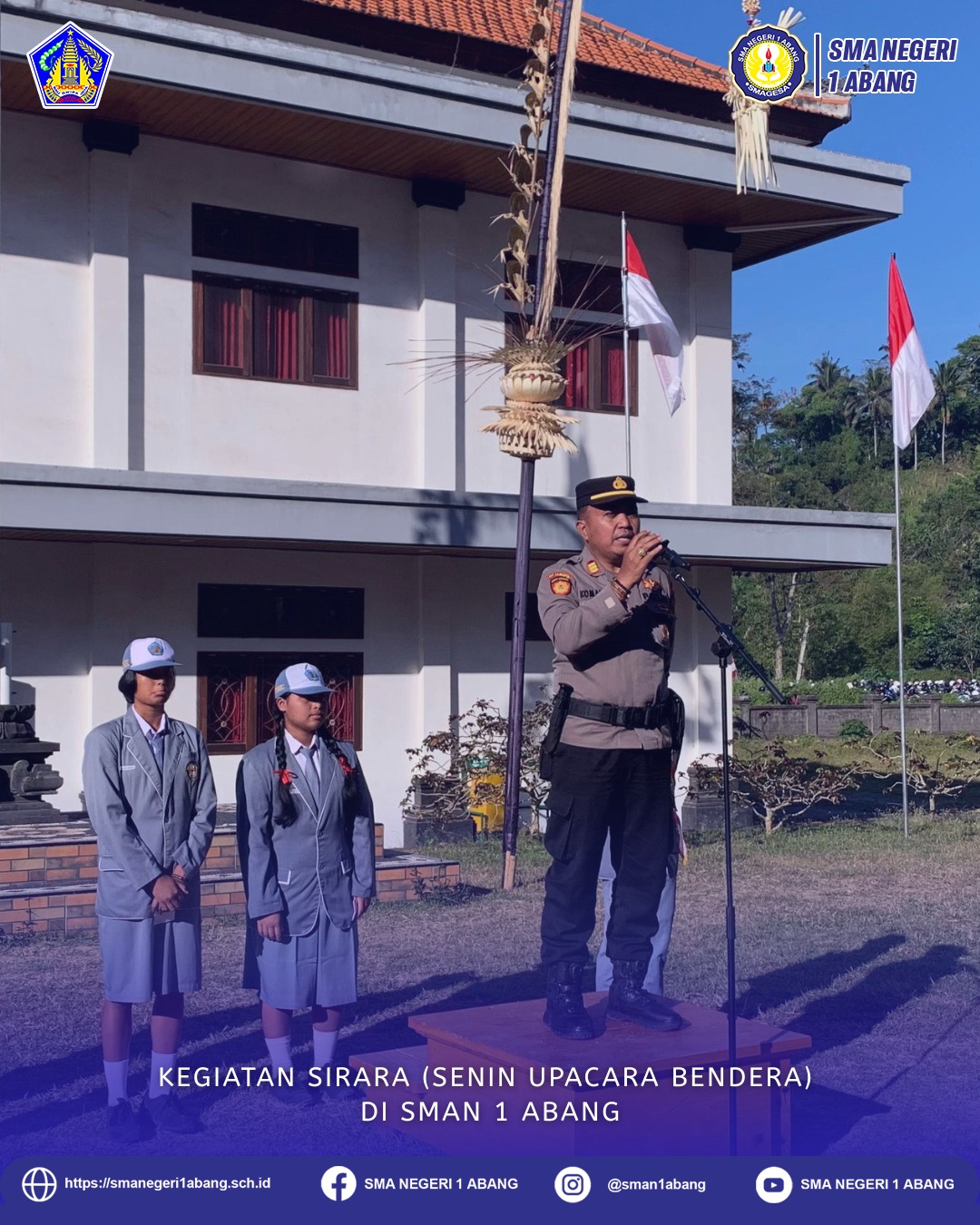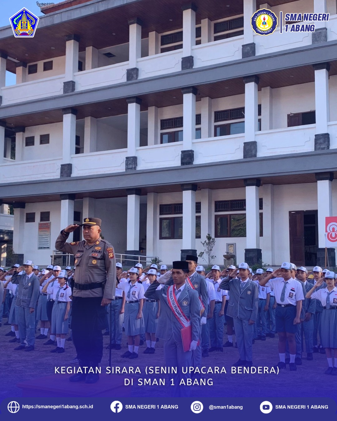 Abang, Senin 1 September 2025 – SMAN 1 Abang kembali melaksanakan kegiatan Sirara (Senin Upacara Bendera) yang berlangsung khidmat dan penuh makna. Pada kesempatan kali ini, pembina upacara adalah Kapolsek Abang dalam program Police Goes to School.