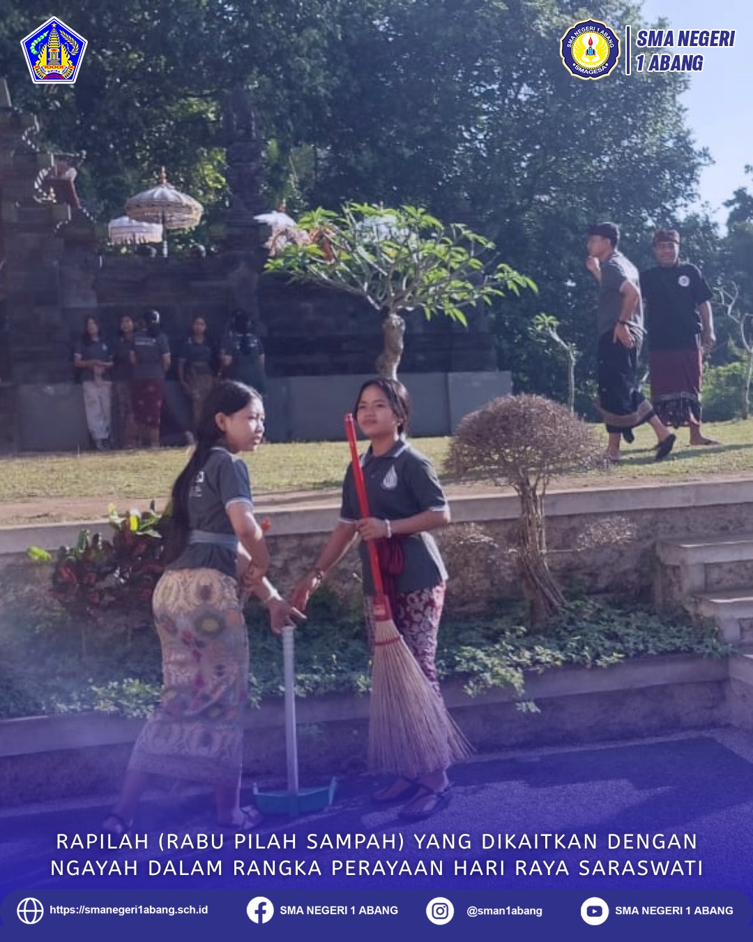 Hari ini SMAN 1 Abang melaksanakan kegiatan Rapilah (Rabu Pilah Sampah) yang dikaitkan dengan ngayah dalam rangka perayaan Hari Raya Saraswati.