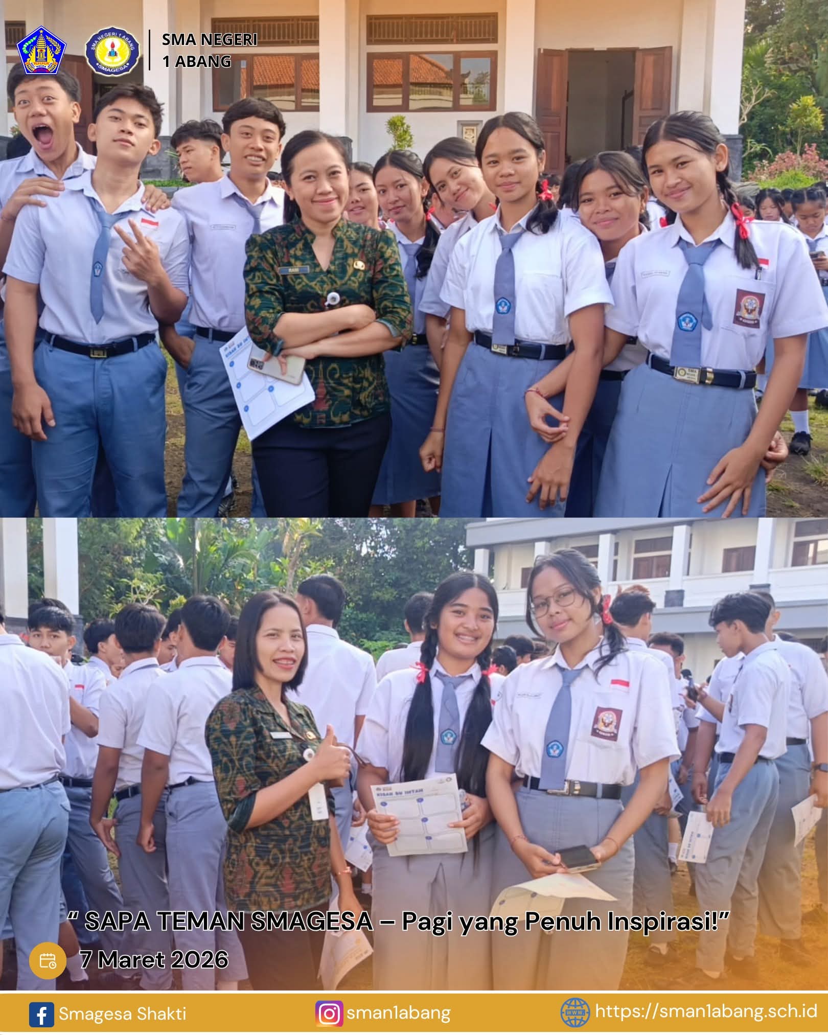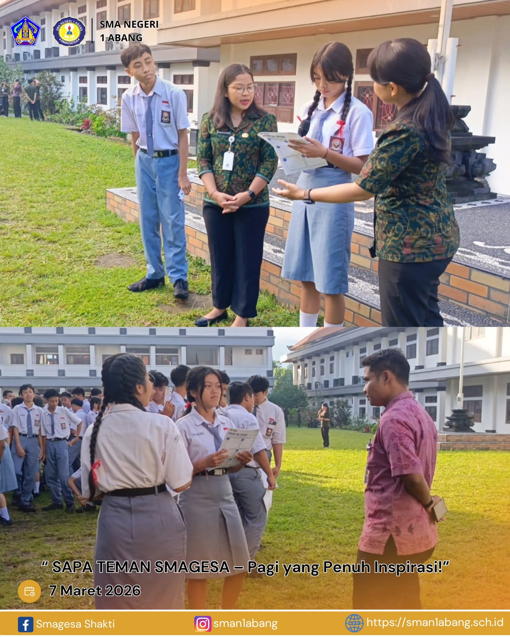 Pagi ini, suasana di SMAN 1 Abang terasa hangat dan penuh semangat melalui kegiatan Sapa Teman. 🌞