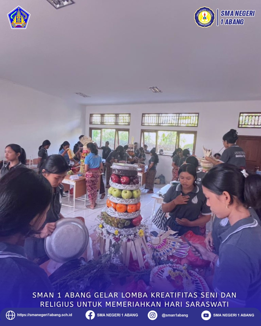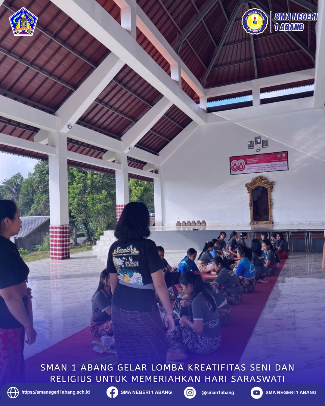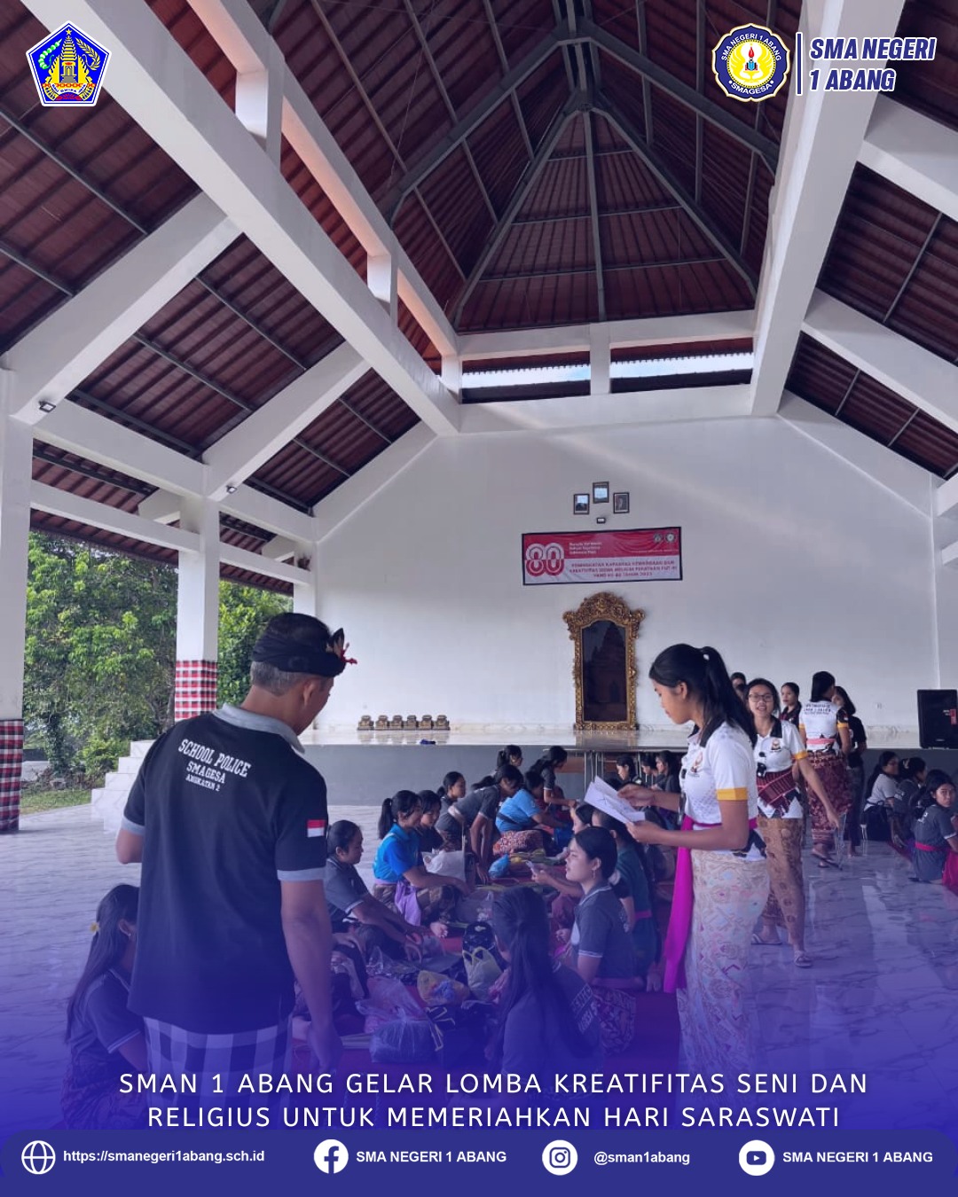 Dalam rangka memeriahkan perayaan Hari Saraswati, SMAN 1 Abang menyelenggarakan berbagai lomba (wimbakara) yang sarat makna pada hari ini. Kegiatan dibuka secara resmi oleh Kepala SMAN 1 Abang, I Putu Suweta, S.Pd., M.Pd.