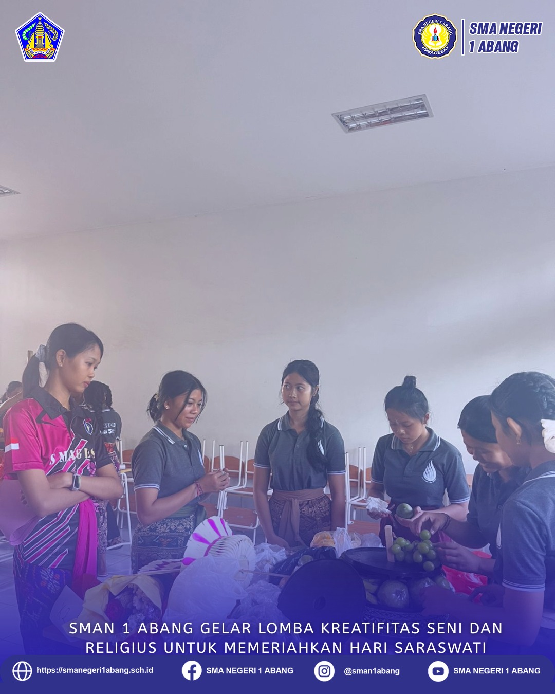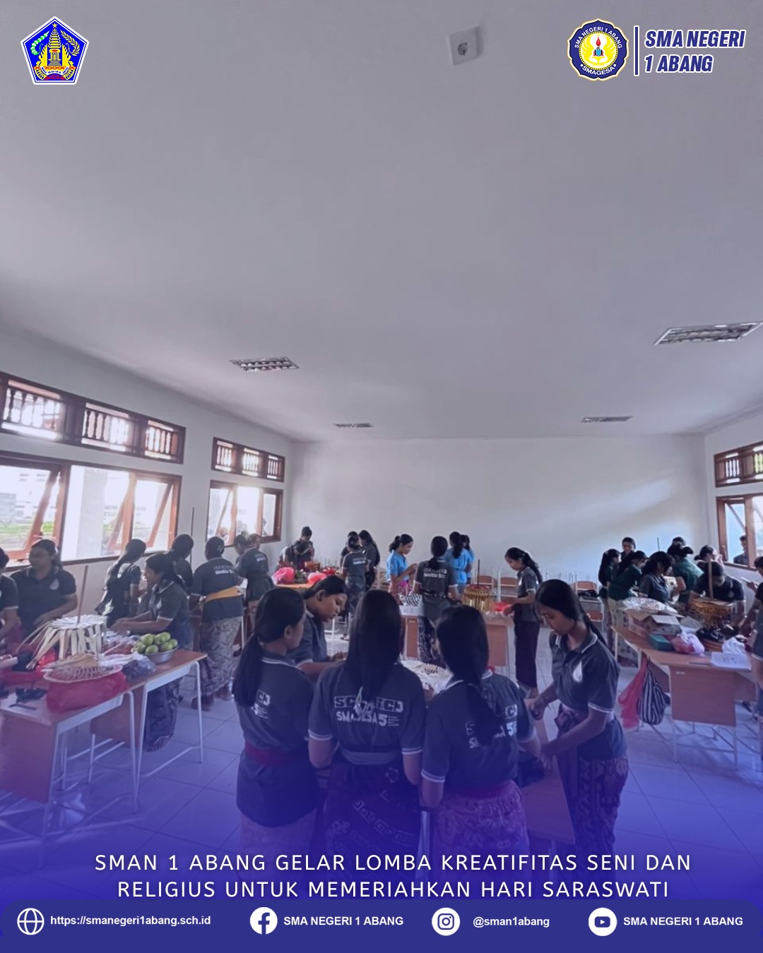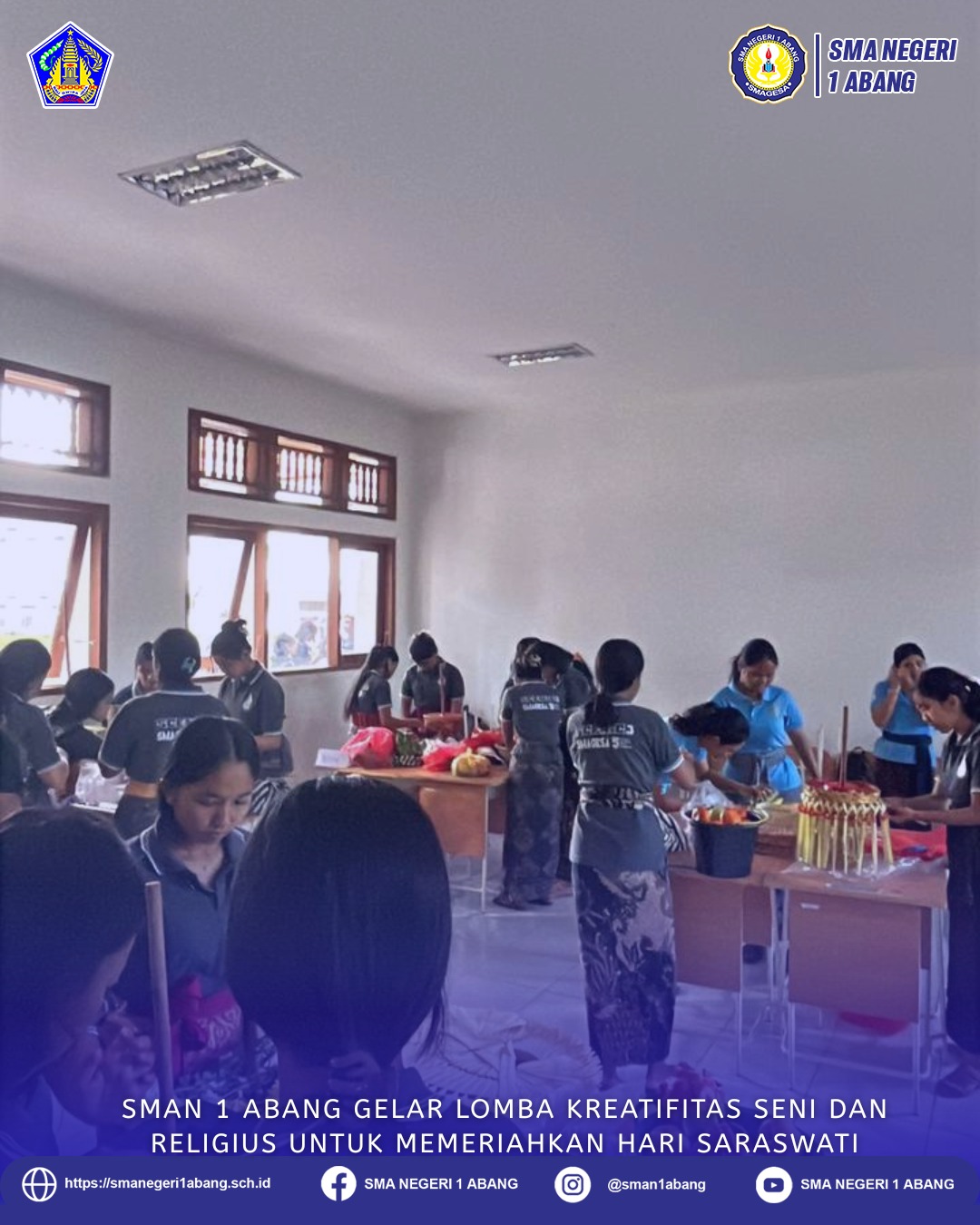 Dalam rangka memeriahkan perayaan Hari Saraswati, SMAN 1 Abang menyelenggarakan berbagai lomba (wimbakara) yang sarat makna pada hari ini. Kegiatan dibuka secara resmi oleh Kepala SMAN 1 Abang, I Putu Suweta, S.Pd., M.Pd.