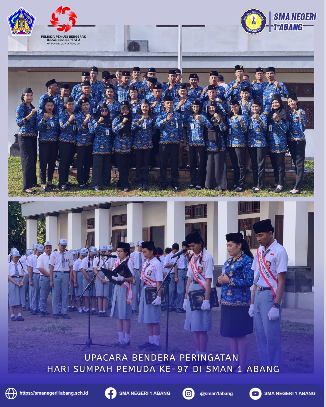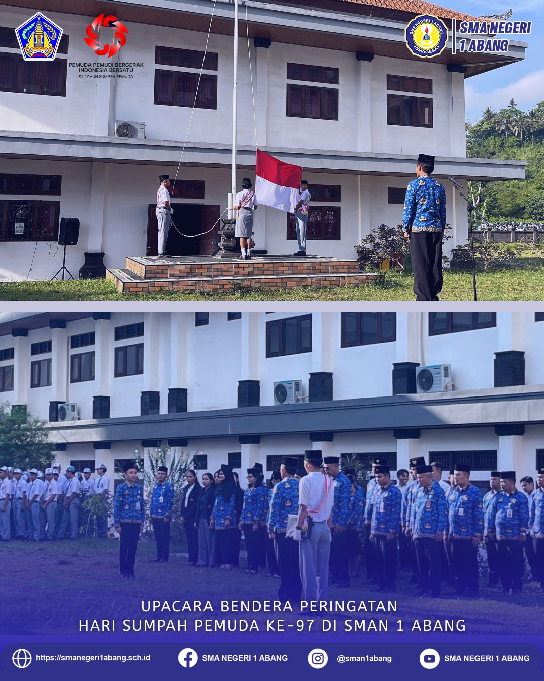 Dalam rangka memperingati Hari Sumpah Pemuda ke-97 tahun 2025 dengan tema “Pemuda Bergerak, Indonesia Maju”, SMAN 1 Abang (SMAGESA) melaksanakan upacara bendera di lapangan sekolah pada hari ini, Senin, 28 Oktober 2025.